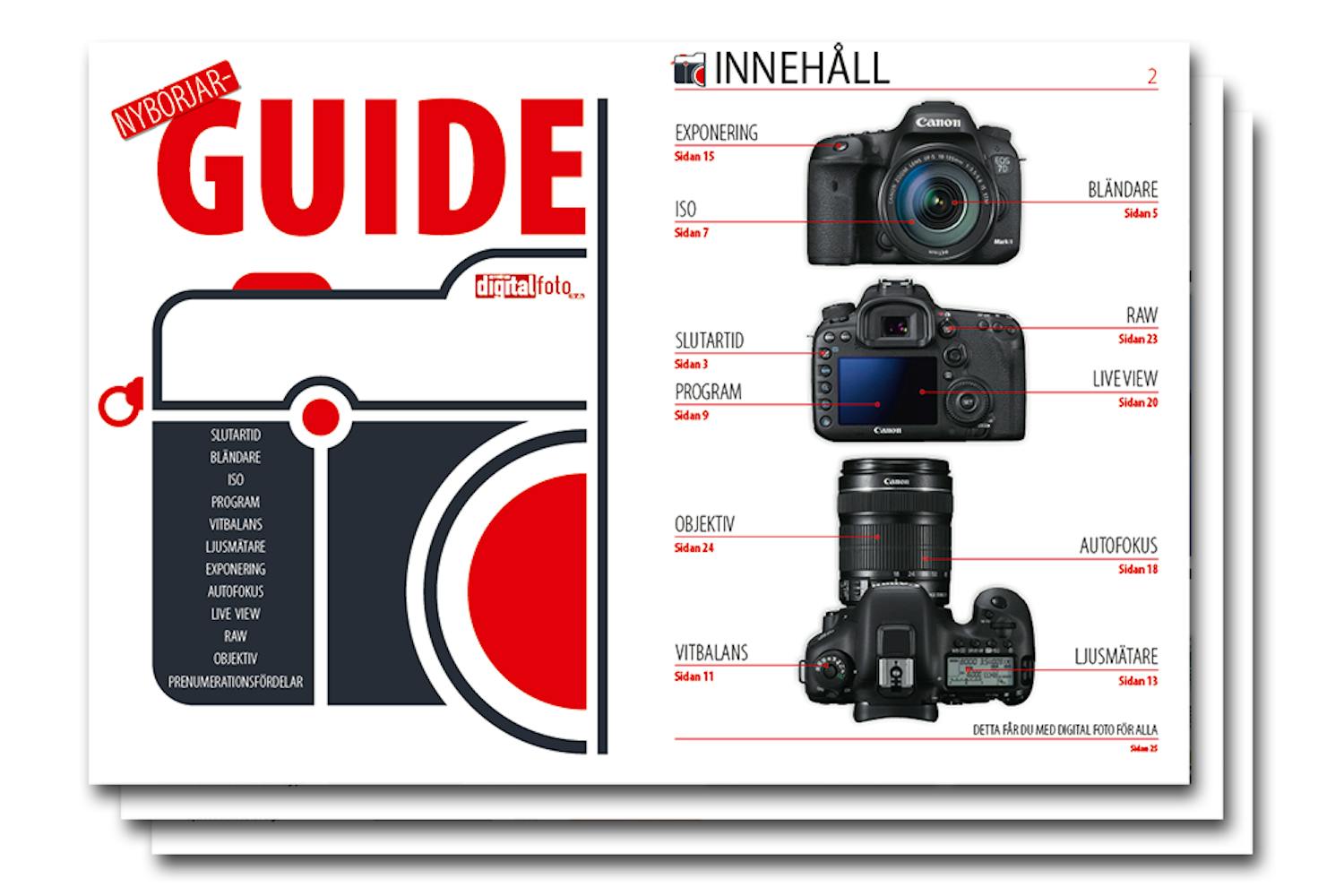 I den här kostnadsfria e-boken hjälper vi dig att komma igång med att få ut ännu mer av din kamera. Du lär dig bland annat om bländare, slutartid, iso, ljusmätning, autofokus och om kamerans olika program. Vi visar också varför du kan få mycket bättre bilder genom att fotografera i det speciella råformatet.