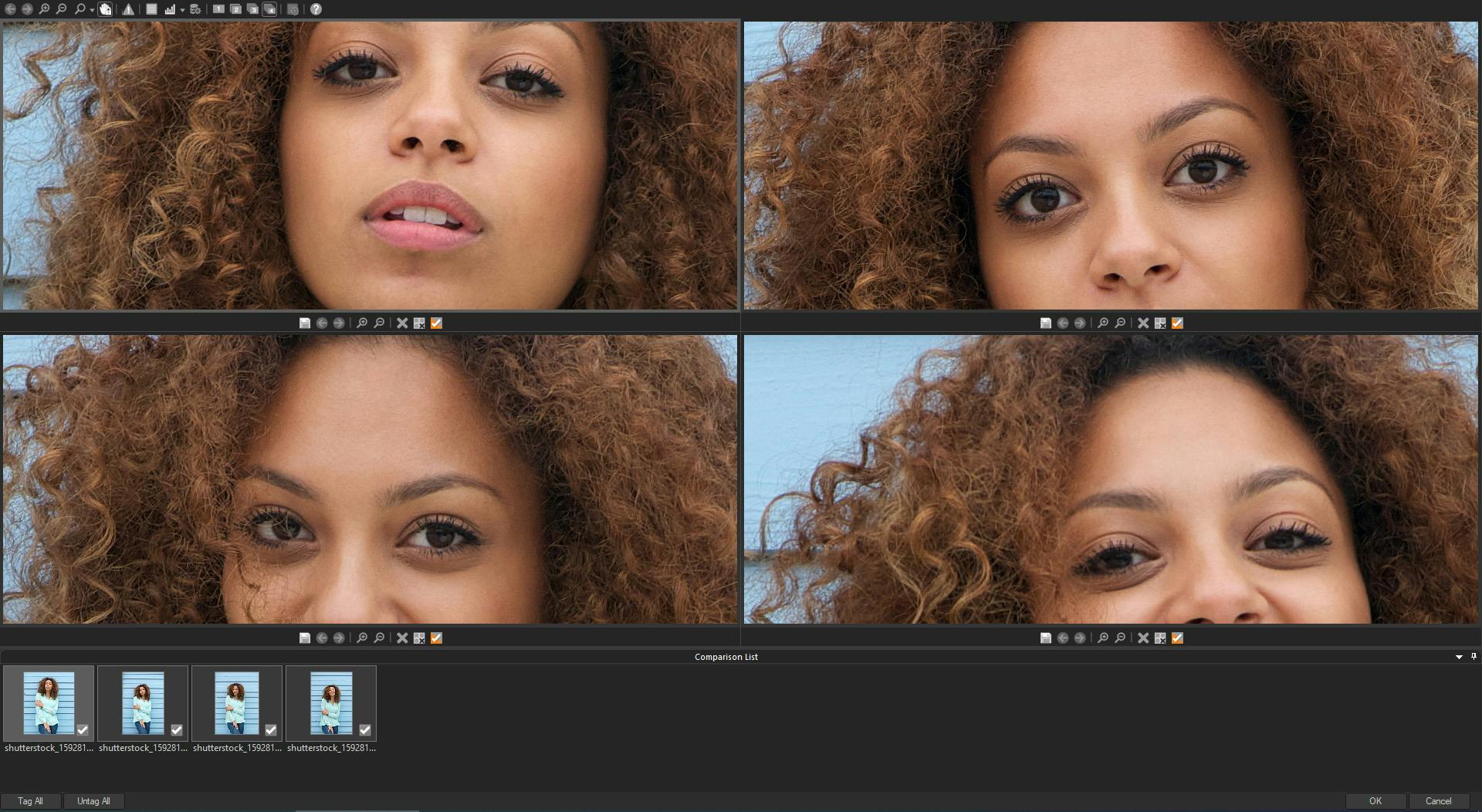 I ACDSee Photo Studio kan du visa fyra bilder bredvid varandra. Det är perfekt när du vill hitta den skarpaste av flera likadana bilder eller välja ut en bild där huvudmotivet ser allra bäst ut.