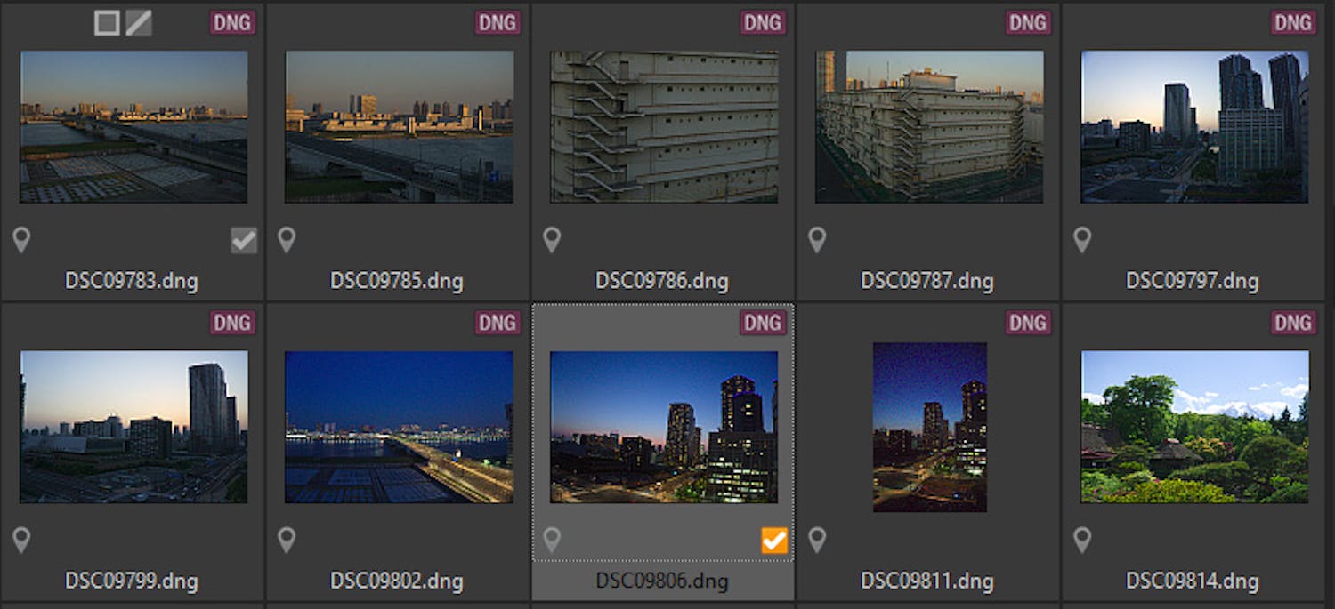 En smart funktion i modulen Manage är att du kan sortera bilderna i en mapp efter ett flertal olika parametrar, och du kan till och med sortera i grupper, så att alla bilder som du har tagit med mobilen och bilderna som du har tagit med systemkameran ligger samlade var för sig.