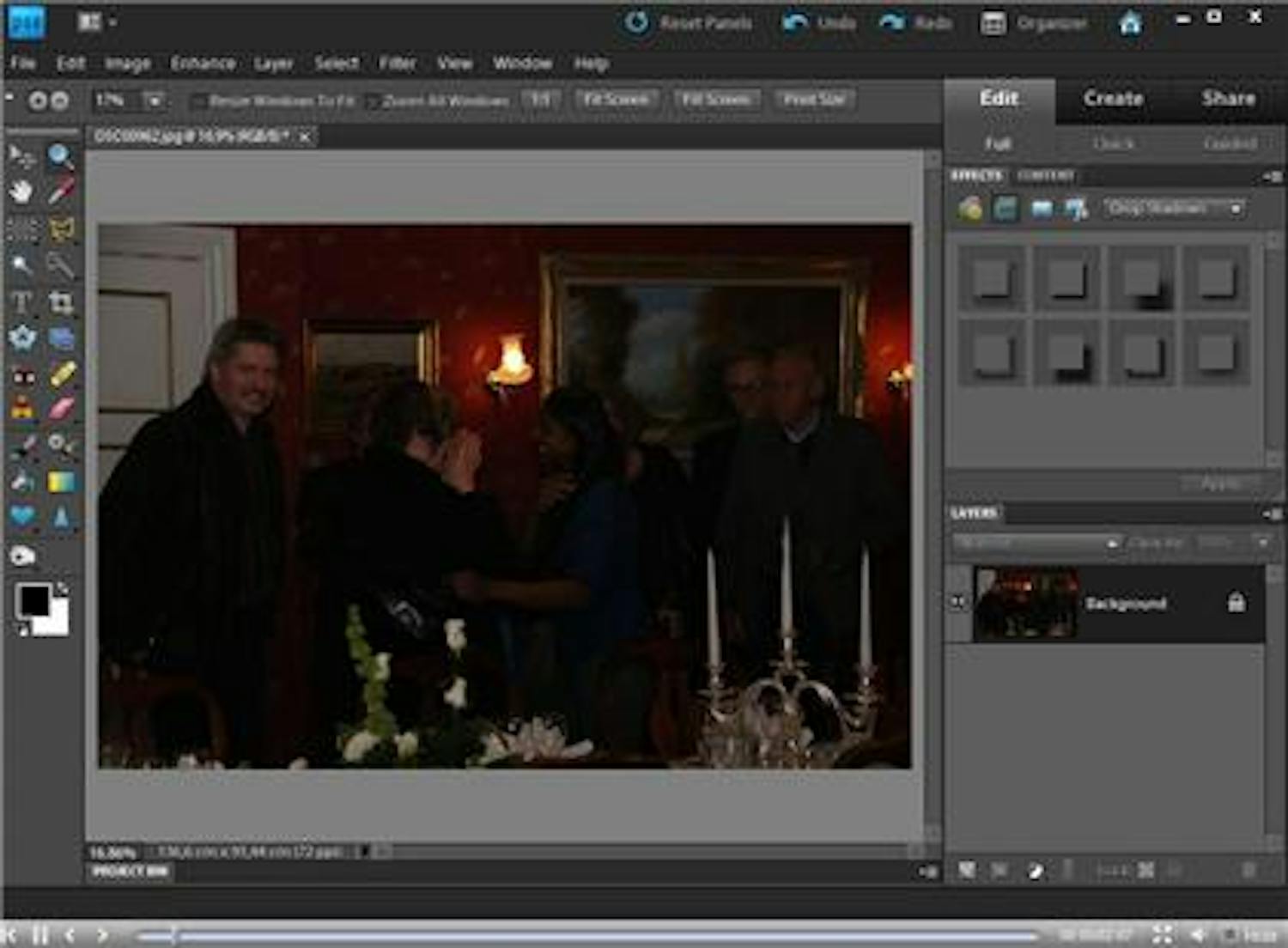 En läsare har varit på fest och tagit bilder där blixten inte gick av. Därför är festdeltagarna kvar långt inne i skuggan. I Elements kan man lyckligtvis snabbt få fram de ljusa leendena igen med hjälp av Snabbredigeringen.