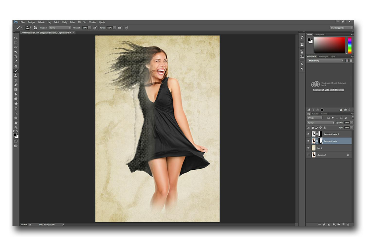 Det är dock inte så spännande med en bild som bara består av stora prickar, så vi blandar prickarna med den ursprungliga bilden, så att de får en glidande övergång, och här får du se hur man gör.