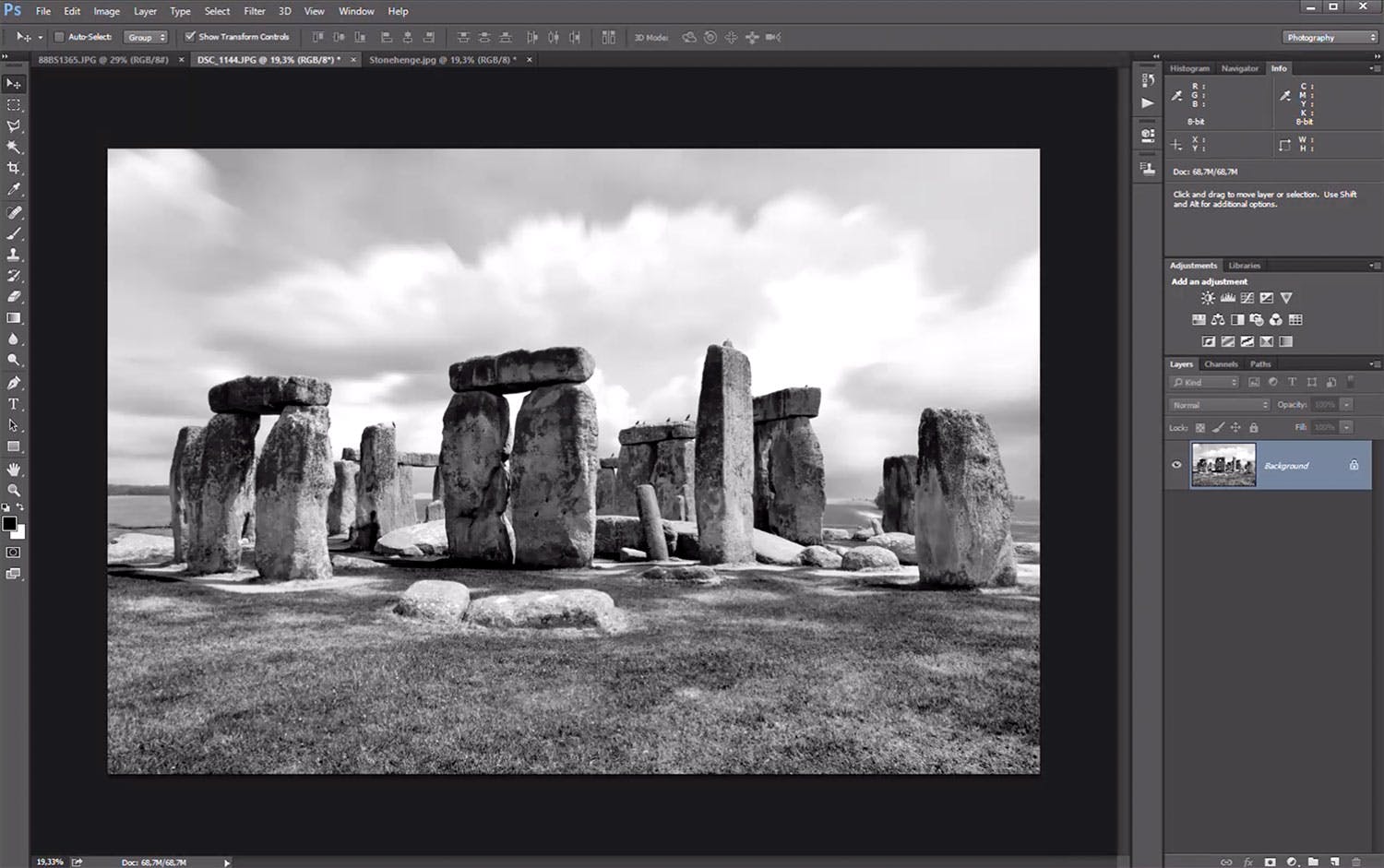 I den här videon lyfter vi en medelmåttig bild till nya höjder. Vi använder avancerade metoder i Photoshop för att konvertera en bild till svartvitt och lägga till en dramatisk himmel.