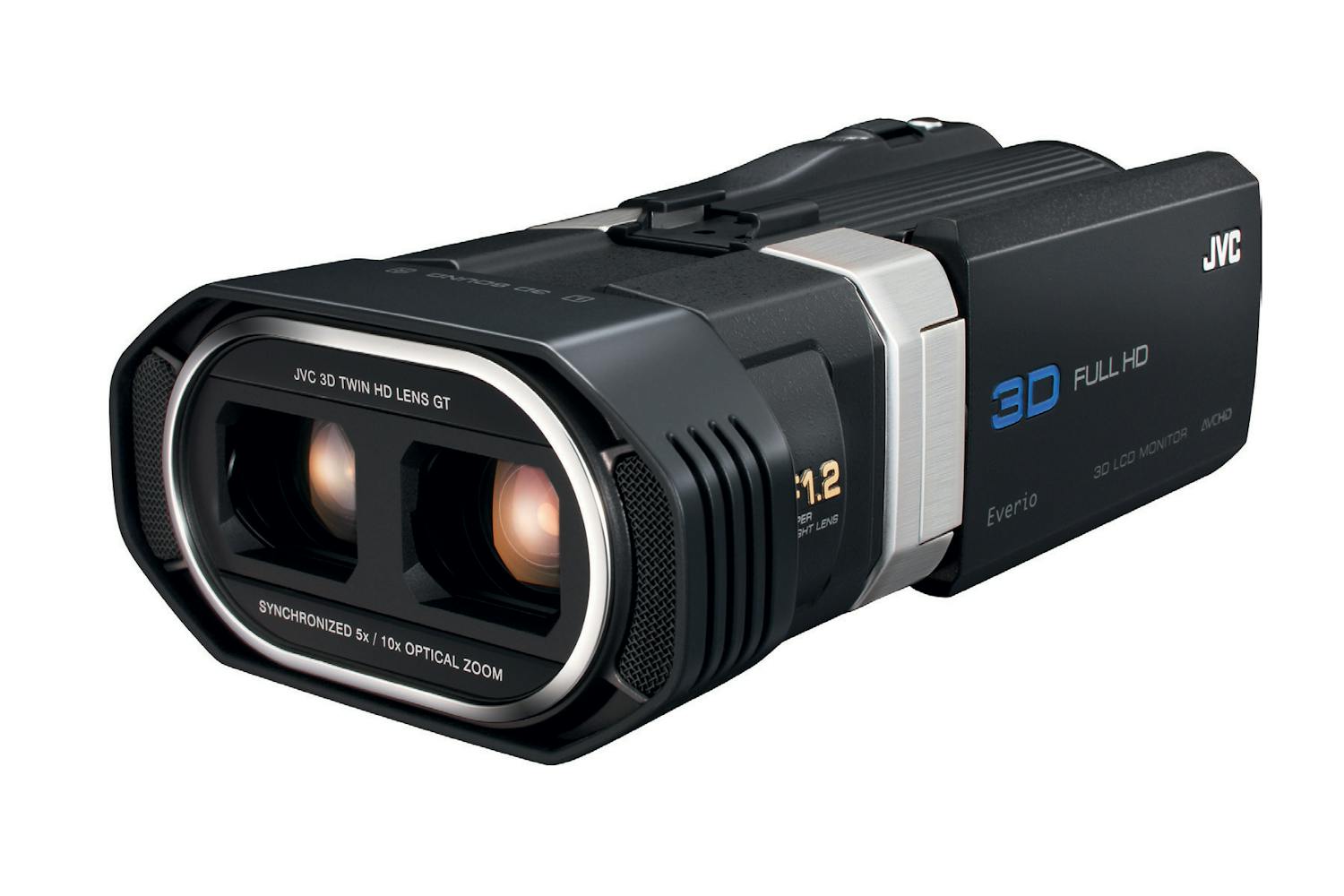 JVC:s kamera ser ut som ett litet rymdskepp med sin osedvanligt kantiga design med kylfl änsar avbrutna av band där skärmen är påhängd. Baktill sitter en rad knappar i ring runt en större knapp med blått ljus och påskriften 3D. Genom att trycka här växlar man mellan inspelning i 2D eller 3D. Designen ger ett ovanligt bra och rätt fast grepp om kameran.