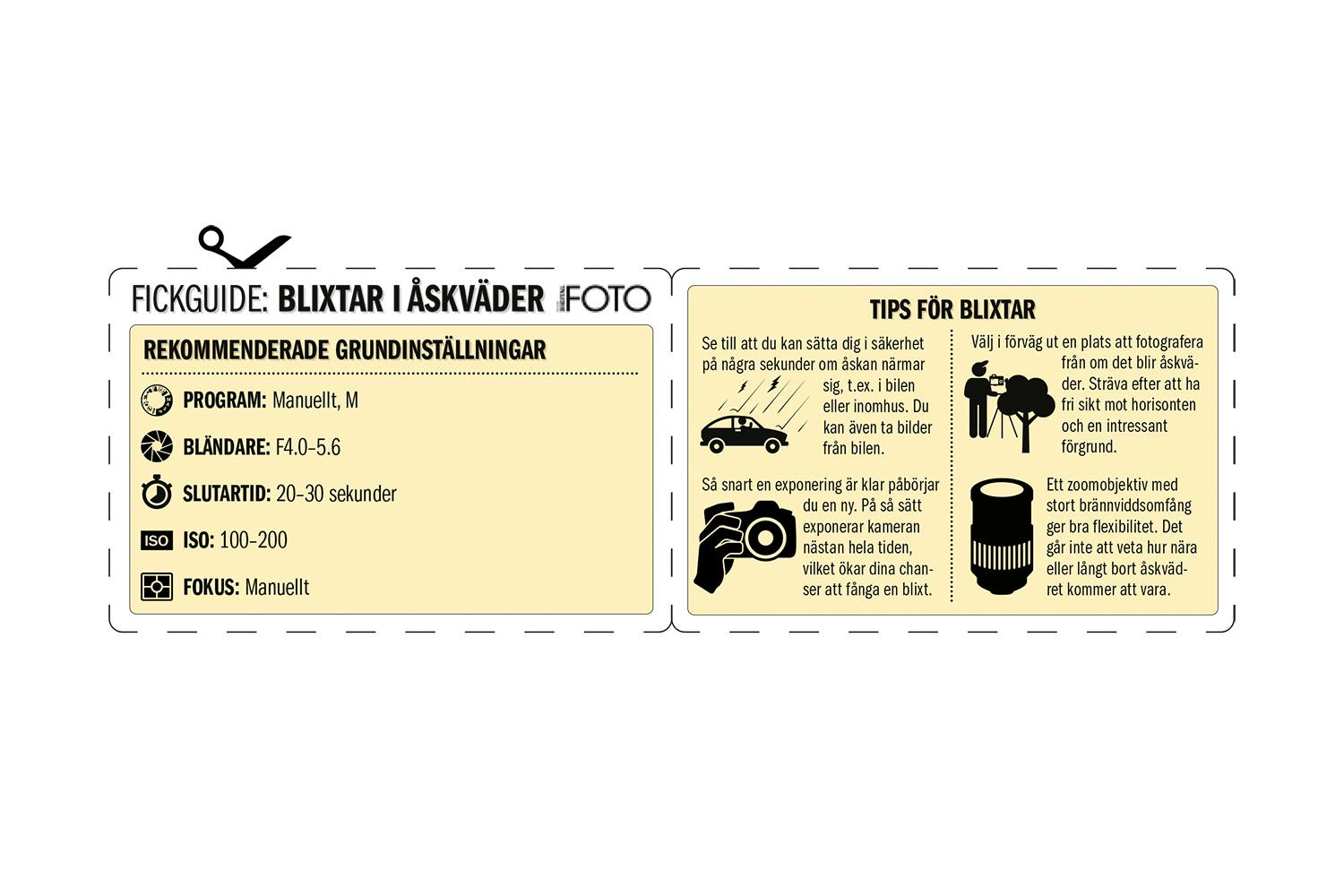 I den här fickguiden får du tips som hjälper dig att fota de svårfångade blixtarna. Se även våra rekommendationer för kamerainställningar.