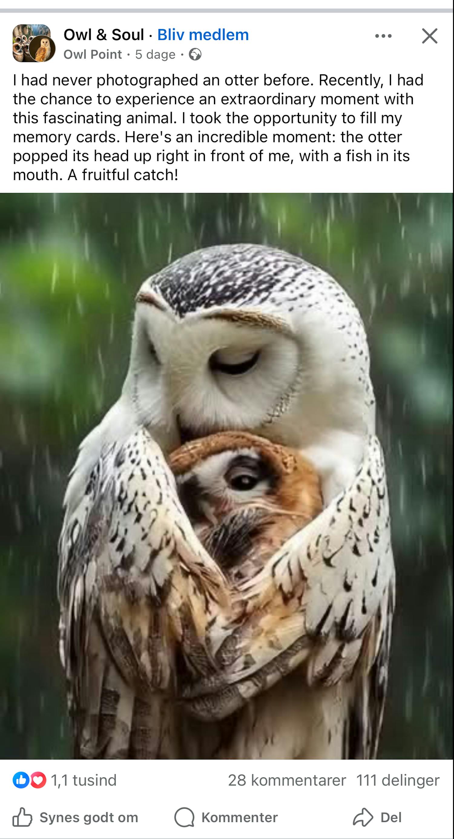 Har du stött på denna lilla text tillsammans med en otrolig bild av djur, landskap, natthimlar eller liknande? Då är det troligtvis en bluff. Bilden är skapad med hjälp av AI och texten är autogenererad. Just nu är Facebook fullt av den här typen av innehåll.
