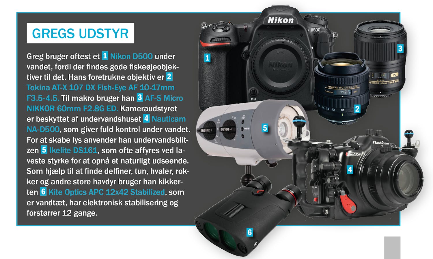 ”Blixten förstärker motivet så att det blir skarpare än jag upplever det nere i vattnet. Jag använder den lägsta blixtstyrkan för att bevara ett naturligt uttryck och för att inte störa djuren. Jag dyker sällan djupare än 30 meter, så det brukar finnas gott om naturligt ljus där nere. Det kan bli väldigt bra bilder när solljuset bryter igenom ytan”, säger Greg, som trots sina imponerande bilder använder en rätt blygsam kamerautrustning.
