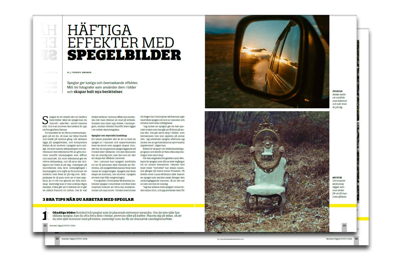 Du kan se fler exempel på hur man kan använda speglar, få tekniktips och läsa berättelser från framstående fotografer som använder sig av speglar i det nya numret av Bonnier Digital FOTO. Läs bland annat berättelsen bakom bilden Invisble av Laura Williams, som är en av de mest delade bilderna på Pinterest och Facebook.