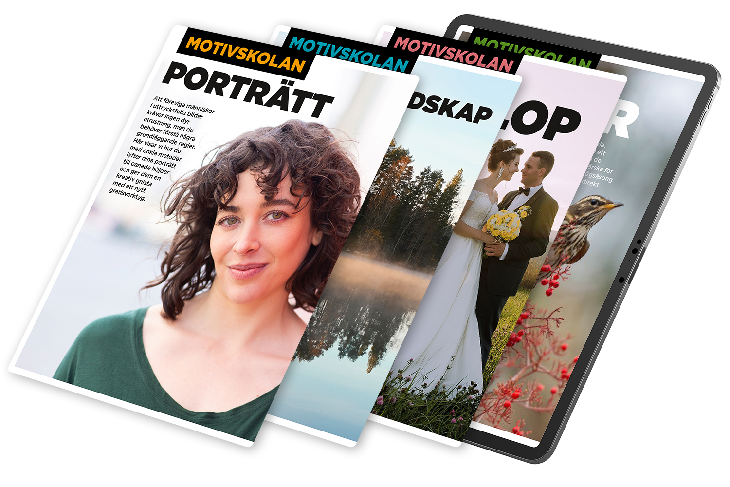 Nu kan du ladda ner de fyra första avsnitten i vår serie ”Motivskolan”, där du lär dig grunderna för att fotografera alla de viktigaste motiven. Varje avsnitt är en liten e-bok som du kan spara på digitala enheter och ta med dig.