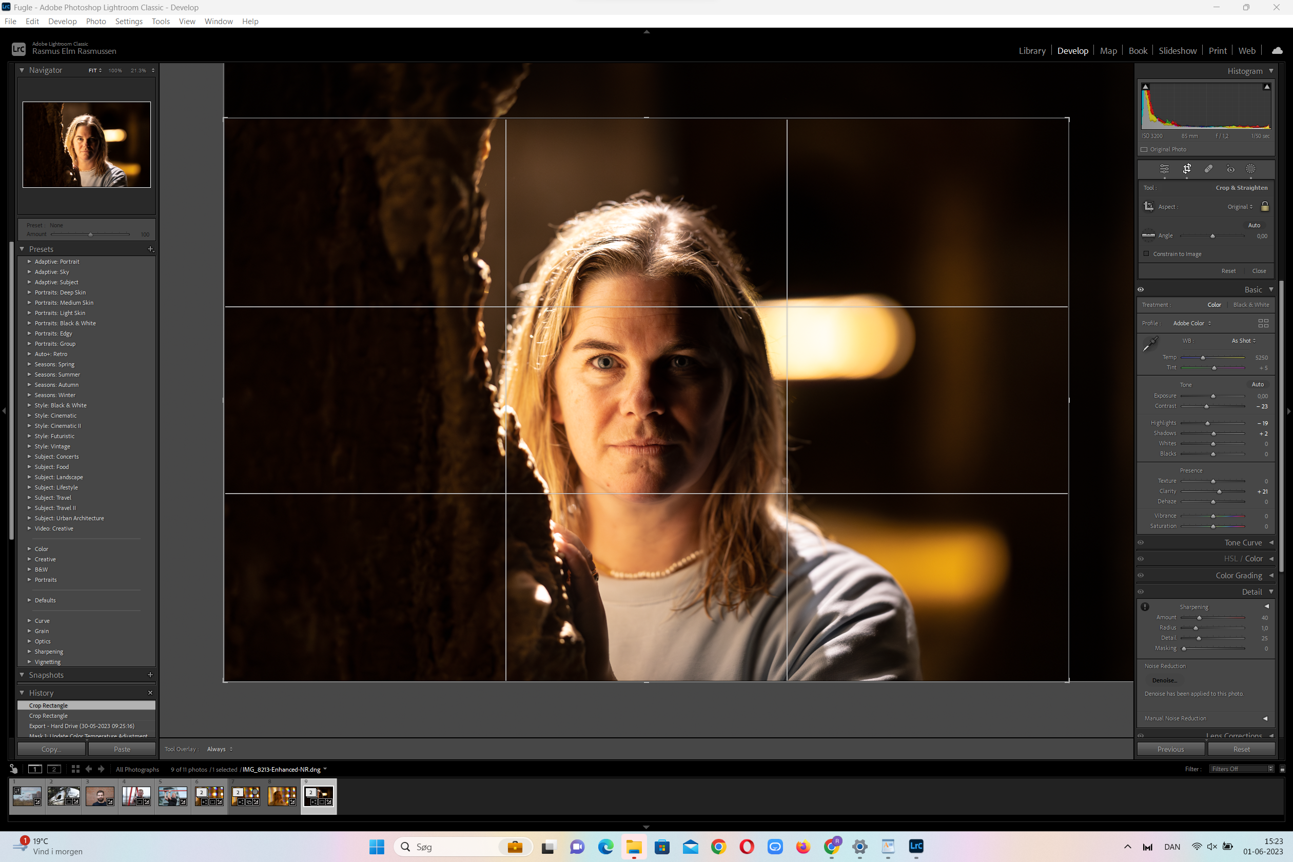 Ta alltid porträtt i råformat. Då får du stor handlingsfrihet när du efterbehandlar dina bilder. Beskär med verktyget Beskär och finjustera ljus, vitbalans och färgprofil i hela bilden med Exponering, Vitbalans och Färgprofil.