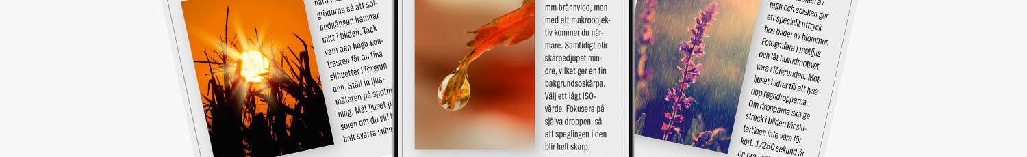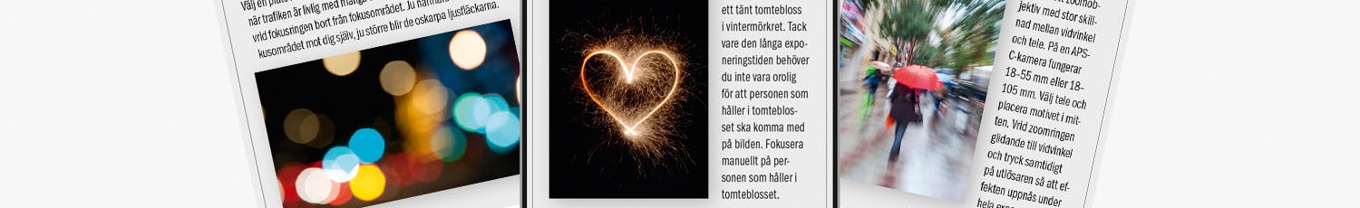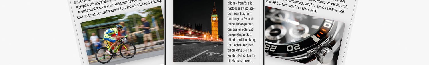 Här hittar du massor av tips och guider som hjälper dig att lyckas med bilderna. Lär dig allt om vitbalans, ISO och andra viktiga fototermer.