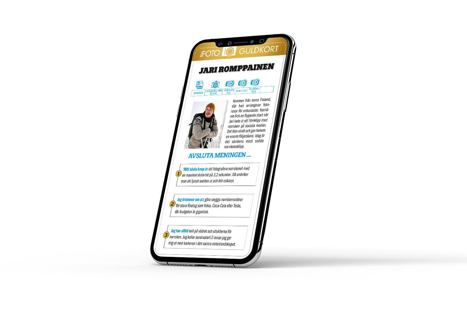 Med våra speciella guldkort får du inspiration och fotoknep för exempelvis norrsken, natur- och actionmotiv från några av de bästa fotograferna.