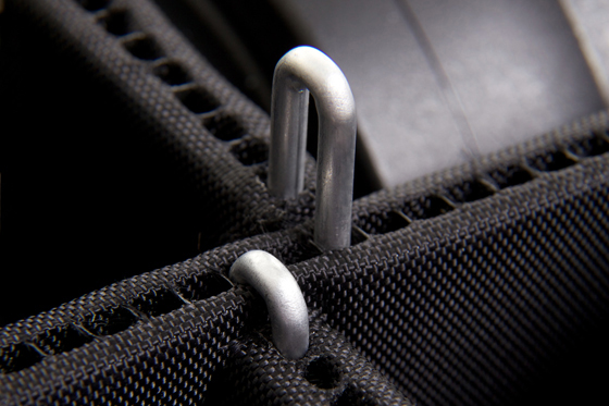 Det kan vara besvärligt att placera de kardborrförsedda skiljeväggarna på rätt sätt, och man måste dra till ordentligt när man tar bort dem. Men projektet Trekpak är på gång med en helt ny lösning som består av vadderade skiljerum och galgar i aluminium. Med hjälp av hål längs utrymmenas kanter kan man fästa dem vid varandra med hjälp av galgarna. På så sätt kan man placera skiljeväggarna precis där man vill. Galgarna är lätta att dra upp igen ifall man vill möblera om, och Trekpak-systemet kan användas i olika slags fotoväskor – från ryggsäckar till robusta Pelicase-väskor.