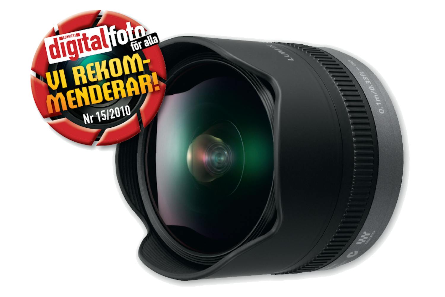 Det höga priset får dig att tappa hakan, och det kan du lugnt fortsätta med, för Panasonics skögeobjektiv på 8' mm är genomgående utmärkt. Den karakteristiska missteckningen och den extrema bildvinkeln på 180'grader låter dig ta bilder där du aldrig har kunnat fotografera förut. Den mekaniska kvaliteten är högsta möjliga, och autofokusfunktionen är ljudlös och exakt och jobbar utan att längden påverkas. Objektivet har även en manuell fokusring som dock sällan behöver användas, för dels är autofokusen säker och dels har objektivet, vid bländarstorlek F22, skärpedjup från frontlinsen till oändligt. Jämfört med andra motsvarande objektiv är Panasonics 8'mm långt över medel. Objektivet är knivskarpt ända ut i hörnen vid full bländaröppning, F3.5.