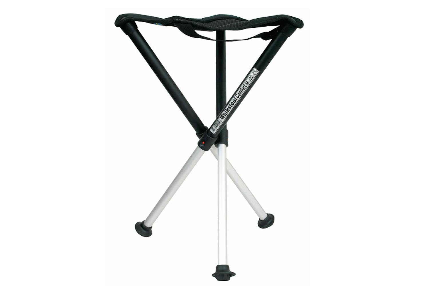 När svenska Walkstool ska bevisa att deras trebenta pall inte är någon klen historia sätter de en Volvo?V50 på sju av pallarna och låter den stå kvar där. Vi har provat mellanstorleken, och man sitter väldigt bekvämt på den, oavsett om den står på ett hårt underlag som ett golv eller på en fuktig mossmatta ute i naturen. Den har breda gummifötter som hindrar stolen från att sjunka ner till och med när underlaget är lite sankt. Pallen är tillverkad av aluminium, väger bara 800?gram och benen dras ut på samma sätt som på ett stativ med en knapp som håller dem på plats när de är ute. Det går dock inte att göra några mellaninställningar.