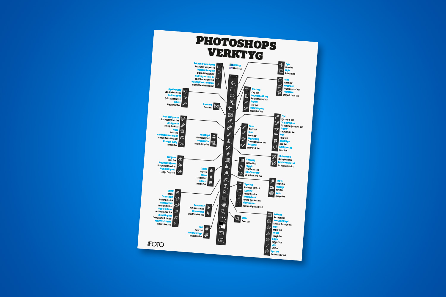 Photoshop Stor översikt: Photoshops alla verktyg Här får du en översikt över Photoshops alla verktyg, så att du lätt kan hitta det rätta. Översikten är lätt att skriva ut, så att du kan ha den liggande vid datorn.
