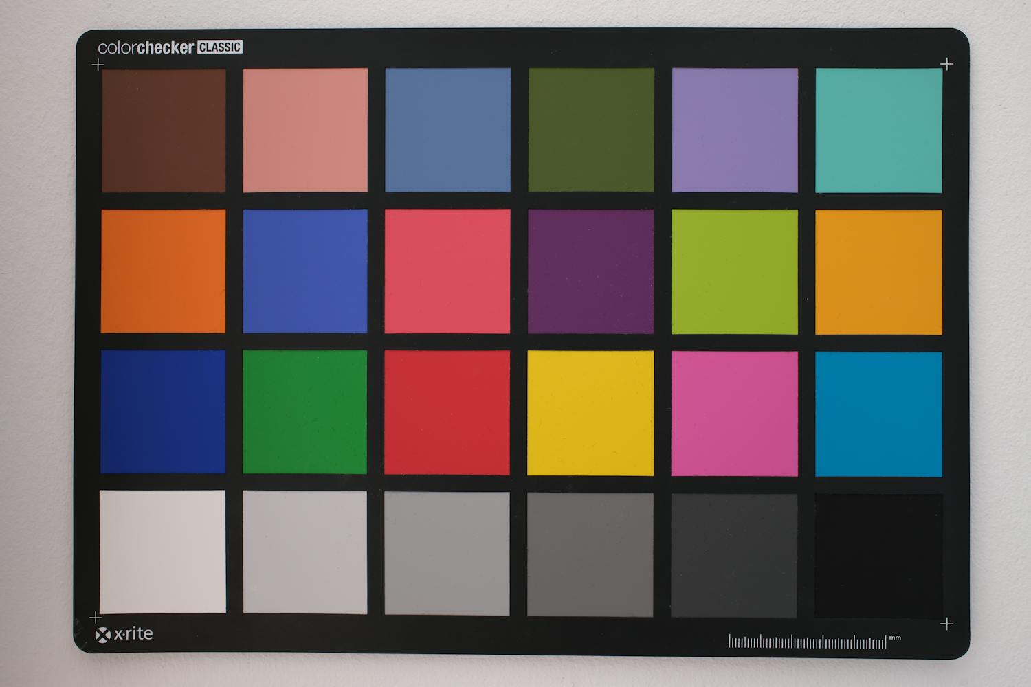 Bilder av färgkartor har tagits med det lägsta ISO-värdet utan ISO-utvidgning, ISO 1600, ISO 6400 respektive det högsta möjliga ISO-värdet med utvidgning.