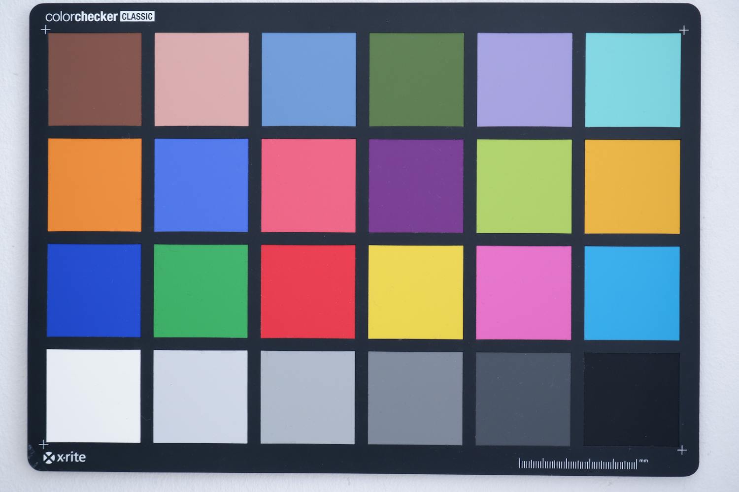 Bilder av färgkort är tagna vid lägsta ISO-värde utan ISO-utvidgning, ISO 1600, ISO 6400 respektive högsta möjliga ISO-värde med utvidgning.